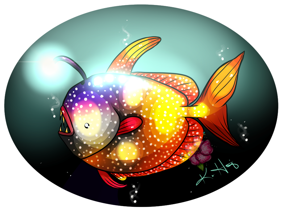AND THIS ONE IS FIRST! It is a moonfish/angler fish. Vur scare. Vur colorful. IT'S GOT SHINIES AND SHARP TEEFS.