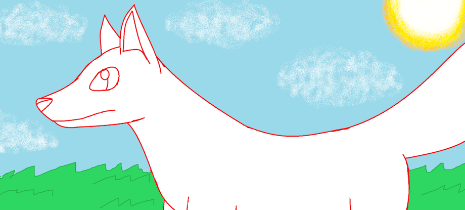 A simple little base of a wolf/canine made in MSPaint with a background.