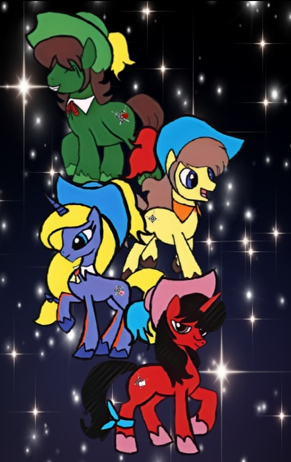 This is a mlp version of them athos and aramis are unicorns, while porthos and dartgana are terrestrial foals