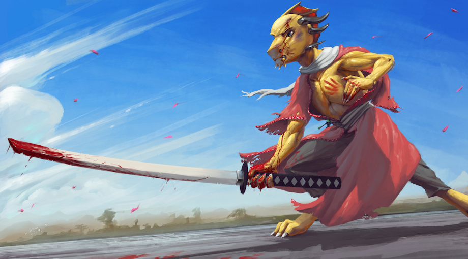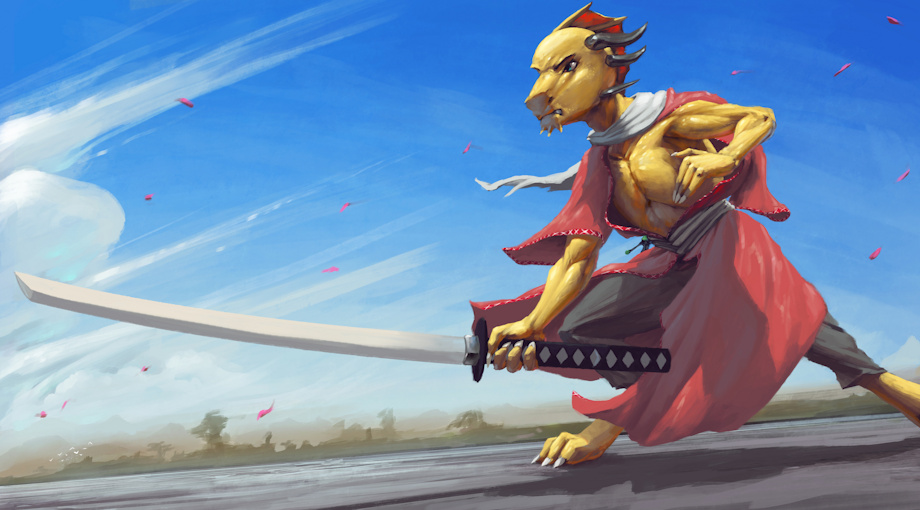 Commission from "SevenDastardlyDeeds." His bad-ass kobold is handling a rough fight through this campaign, it seems!