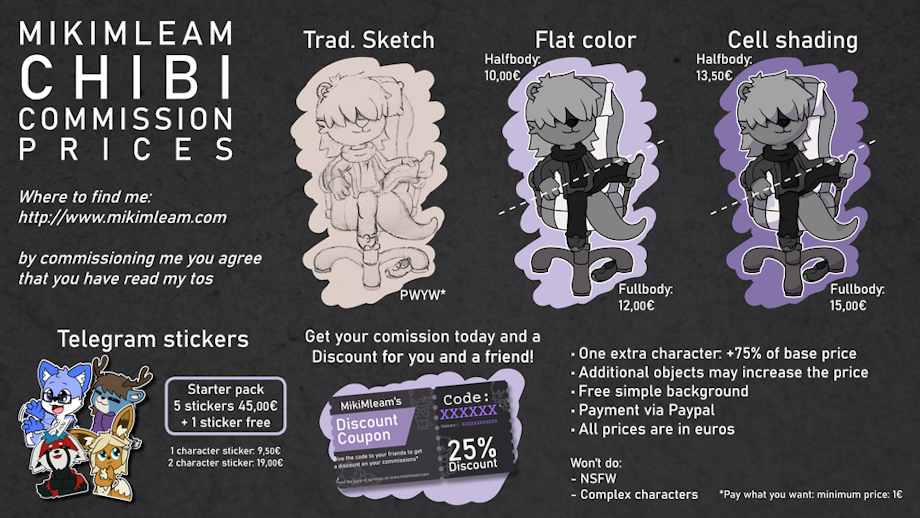 After your next commission, I will give you your personal discount code! (pssst, if you did not get one just ask me!)