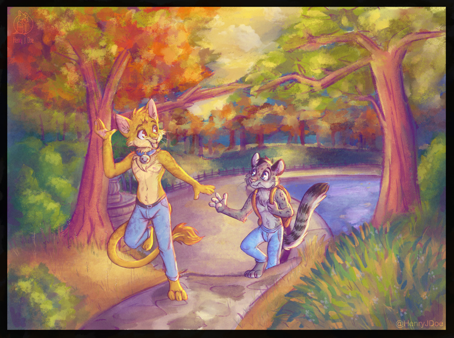 Dahan and a snep pal out for a walk in the park.