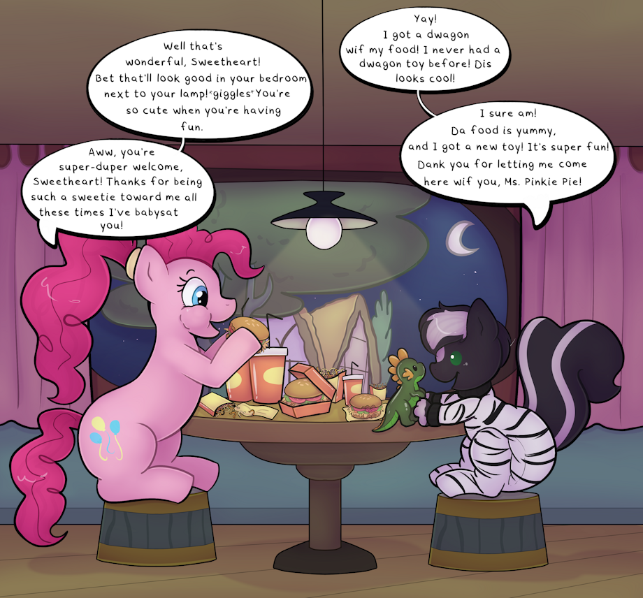 Pinkie babysitting little Zenawa at the Hayburger ~