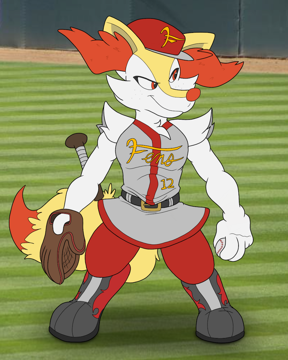 A commissioner wanted to see a male Braixen all ready for a game of baseball!