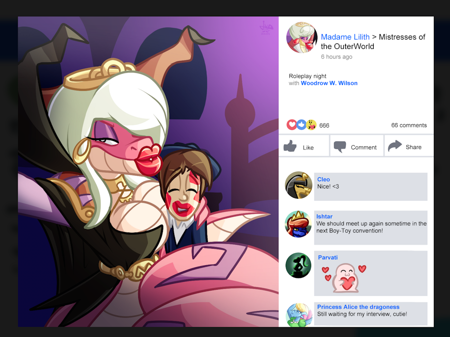 Madame Lilith is no stranger to the advances of mass media, and neither are the fellow snake mistresses from the outerworld >;3