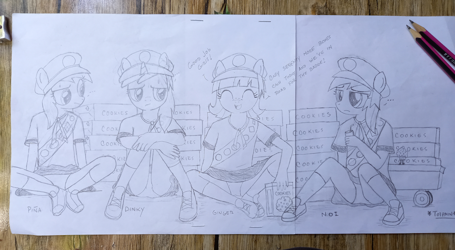 "Oh, uh, they didn't explain?" Fluttershy shook her head. the troop leader sighed. "Since there ARE several hundred Colt Scouts attending the Jamboree, and just as many Filly Scouts... obviously having all of them trooping after you as you went on your nature hike would less constitute a nature hike and more of a nature trampling. The Nature Hike was reserved as a reward for the two troops-- Colt and Filly-- who did the best on their respective fund drives."