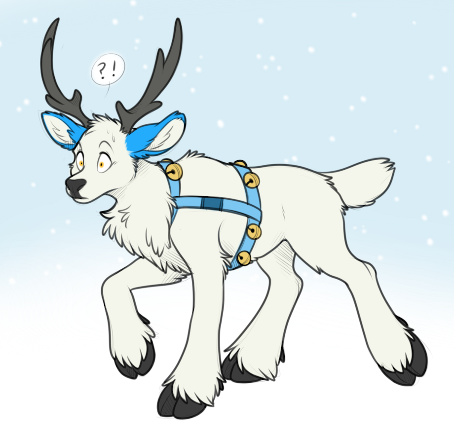 looks like Sköll found a great harness... wait a minute... what happened to him? It's a reindeer now!