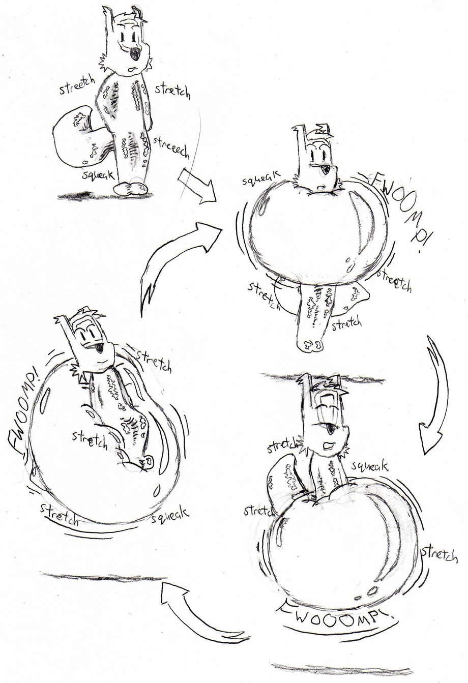the first picture shows that the person just got it on, noticing that his arms and legs are bound to each other. then the suit inflates and expands where the top half of the wearer is, as the person bulges into the air, feeling the satisfaction every seoncd. then the suit bubbles up to the lower half of the wearer's body, hiding where his legs were origonally. (this next part applys only to characters with a tail) soon enough, the suit then balloons where the wearer's tail is, providing a bouncy seat while the wearer is still bound to the suit.