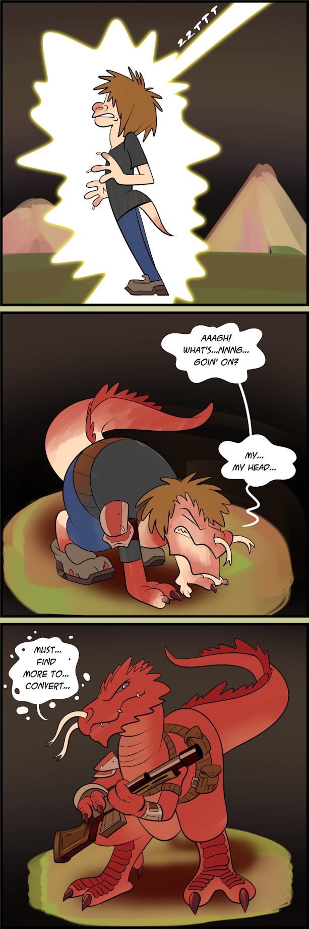 Shadow's been hit by an unknown alien ray! It seems to be changing him inside and out into an alien dino. Now he's determined to continue changing others into his new species, and he's got his sights set on you!