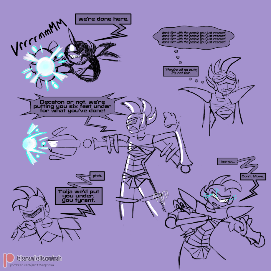 More D&D stuff! My warforged rogue Bebop (who I haven't drawn in a hot minute) and my newest character, Syla Everred, the firbolg pirate wizard. Featuring Allen, who is just happy to be standing between two very tall women.