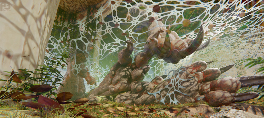 The fungal canopy seems like a nice place to hide from big creatures... just don't get stepped on and maybe... admire the paws :3