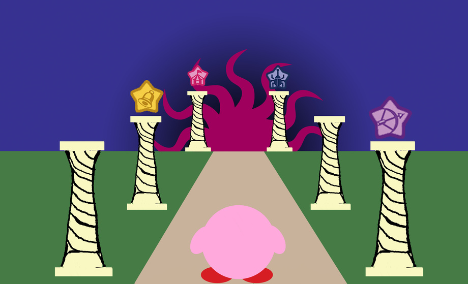 So one of the things going on over at the Deviantart page (link is on the profile page) is what I call the Kirby Ability Quiz. I'm taking the ability stars from Kirby's Return to Dream Land and I am making some for the abilities that aren't in the game, then I'm making a quiz listing it in multiple parts. each part will host six powers at a time. This first one is a quickie that I made in five minutes. I did a power stars deal for my Design Class final and made a power star template with Kirby. I may post that one later...