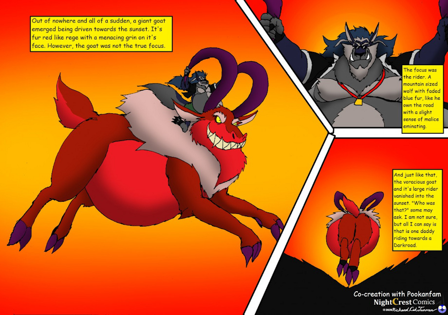 I heard a rumor from a friend who was stuck on the mountainside with some car trouble as the sun was starting to set while we he waited for help he could but pick up on what sounded like thunder rumbling in the distance as it grew louder that's when he saw something coming at high speed all he knew it was big red and goat like, but that's the crazy part is the scary being on top that really spooked him. it was a wolf who looked a few wolves we've all seen before speed past him towards the setting sun Maybe if your lucky you might see him.