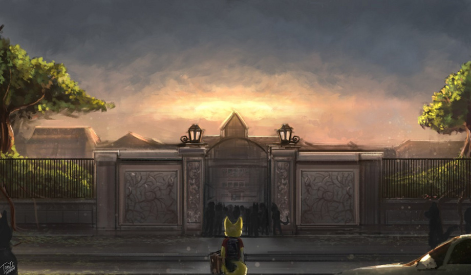 With a heavy suitcase in his hand and a backpack over his shoulder, Limon stood in front of the campus’ stately main gateway to take a breather. The rising sun, which still was hidden behind a thick blanket of clouds, imbued them into a fiery sea of yellow and red and cast a picturesque light on the shadowy buildings on the ground, whose silhouettes loomed behind the high, wrought iron fence.
