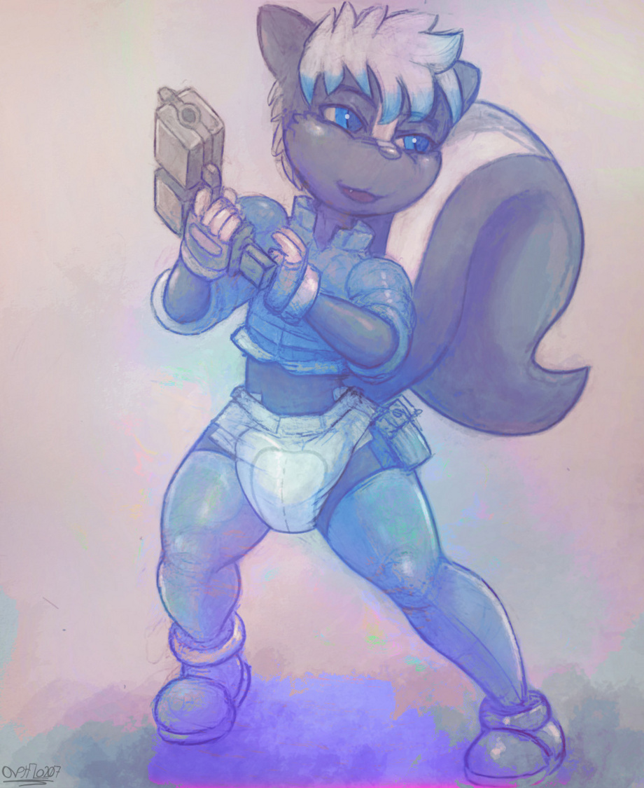 Something a bit different this time! An adult Ozzie dressed in some light armor to look similar to OverFlo's game Project OverFlo. As you can see, he has a diapee on so he can go on missions without needing to take any potty breaks. Not that he would anyway. X3