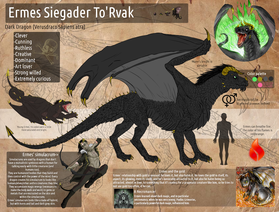 The old reference for Ermes was pretty outdated and even had his name wrong written on it. So, new reference for our evil dragon baby!