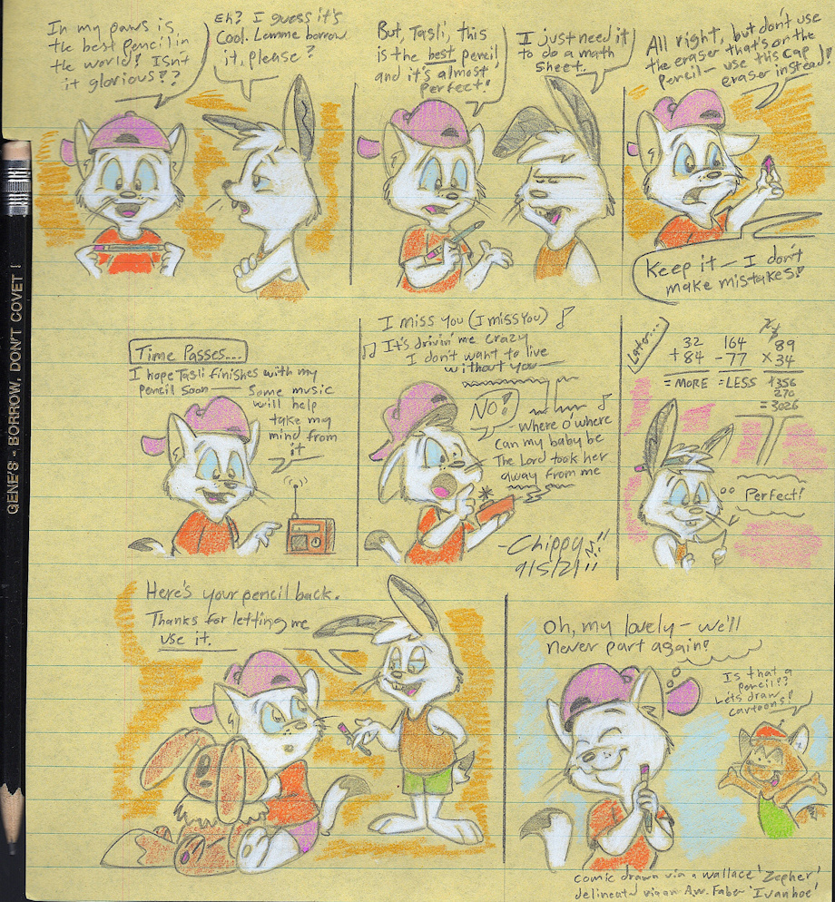 Aside from what was on the pencil you purchased, something tells me that, either now or growing up, you would have acted just like Gene if anyone wanted to borrow a pencil from you. :3