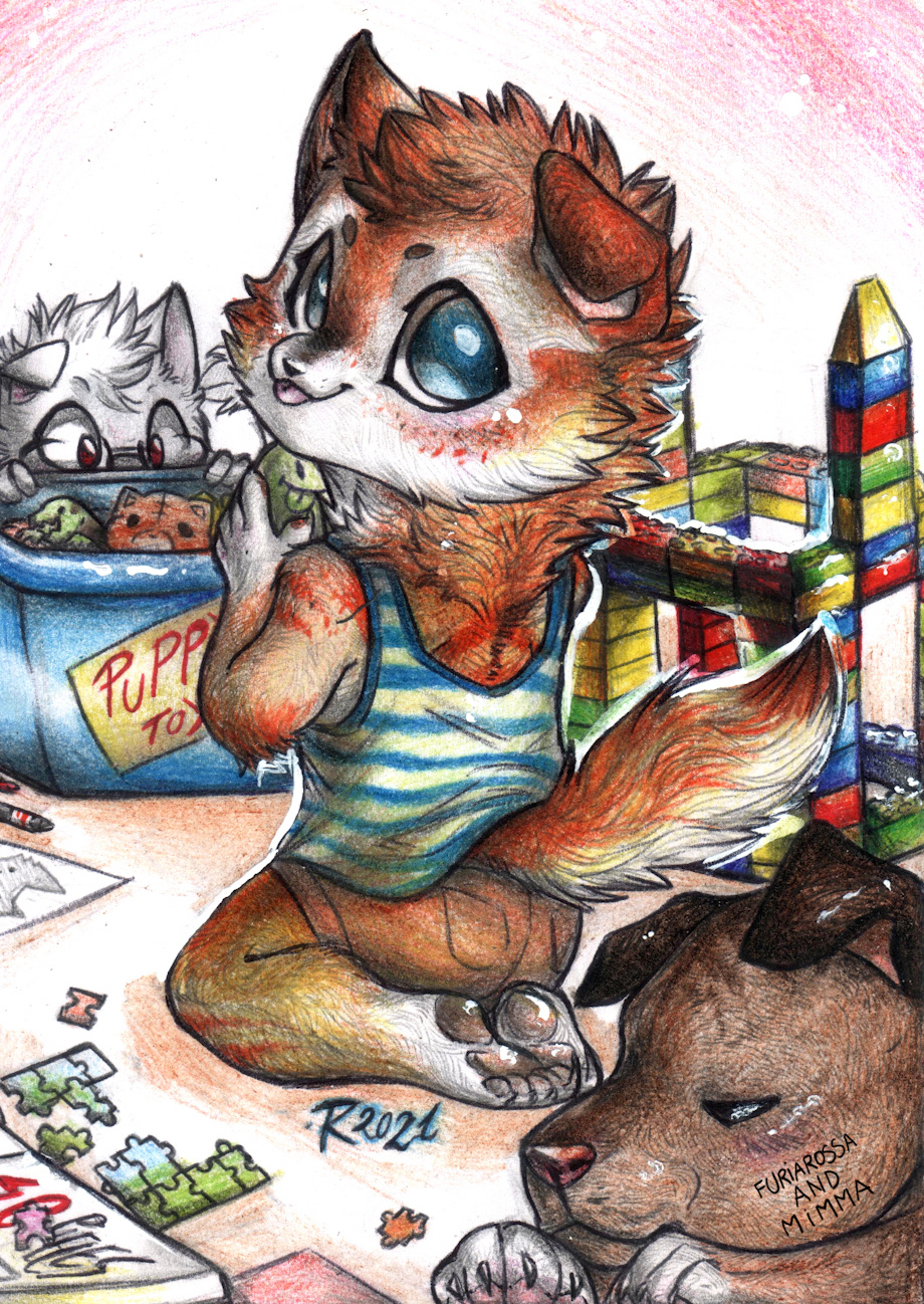 on FurAffinity, result of a YCH auction. Drawn with black ballpoint pen and colored in digital.