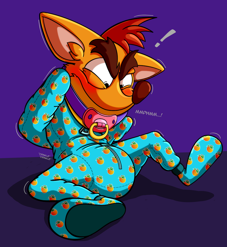 Can you believe that our little Crashy is already 2.5?! Such a big boy, isn't he? He's so happy to celebrate his anniversary he simply can't sit still! Instead, he just keeps trembling with excitement, making his beloved pamp crinkle almost as loudly as he's muffling into his favorite paci! ------------------------------------- In all seriousness, though - Happy 25th Anniversary to Crash Bandicoot! My ultimate, life-time #1 video game series and the most adorable, fuzzy marsupial boy ever <3