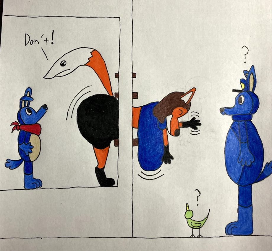 Well, I guess Fancine (My OC) has gotten herself stuck, though it may be tempting for Scooch, but Blitz isn’t going to allow it. On the other side, Sgt. Pooch is mostly confused about what’s going on.