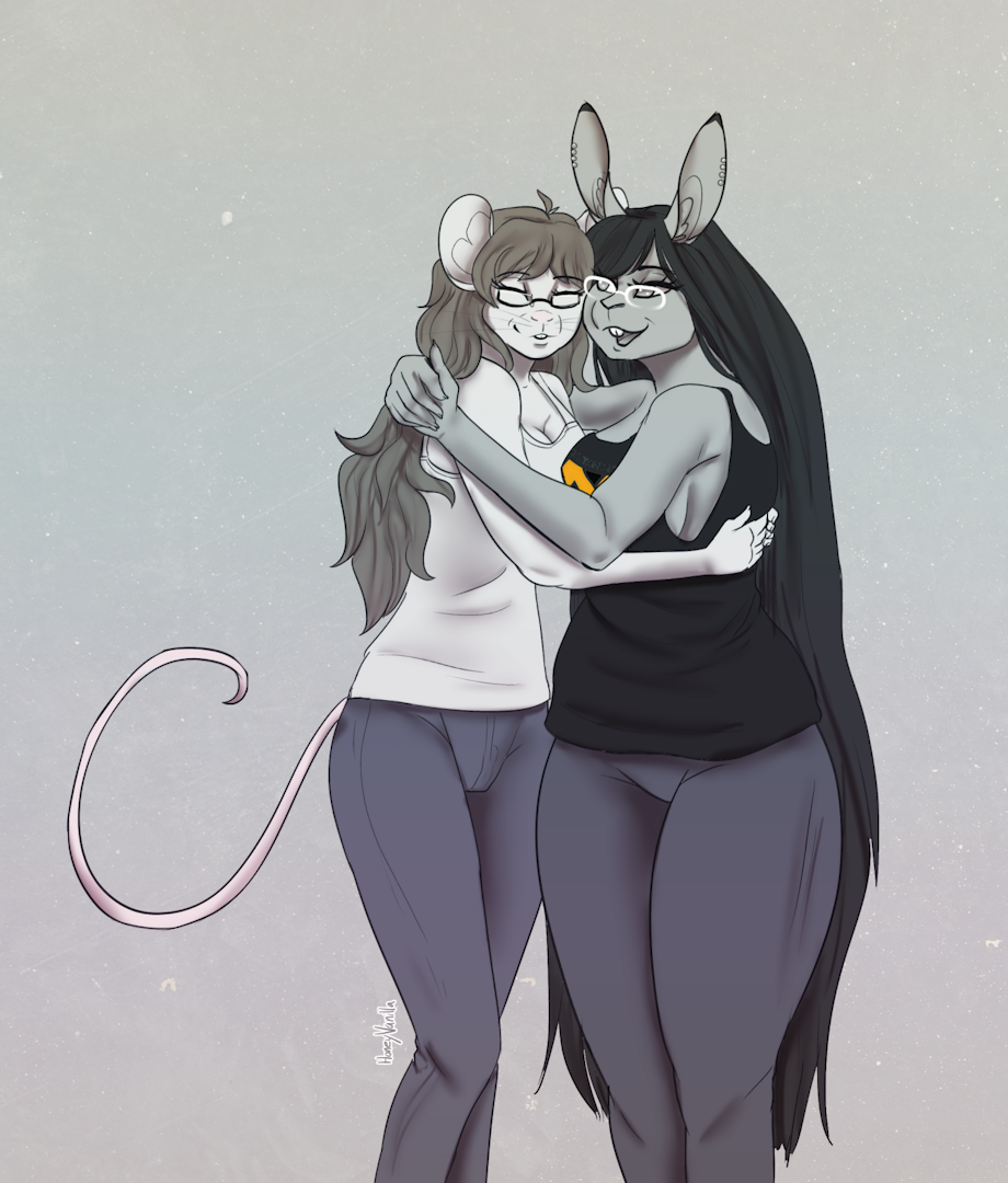 My mouseling Equinox getting a motherly hug from the best bun around. While it's somewhat rare for Eq to open up to new people, the fact that she and Megan's cousin Jen are so close make these two practically family.