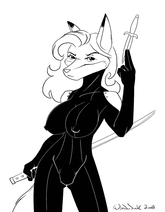 A busty, sword welding, fox gal in a tight catsuit whats not to like?