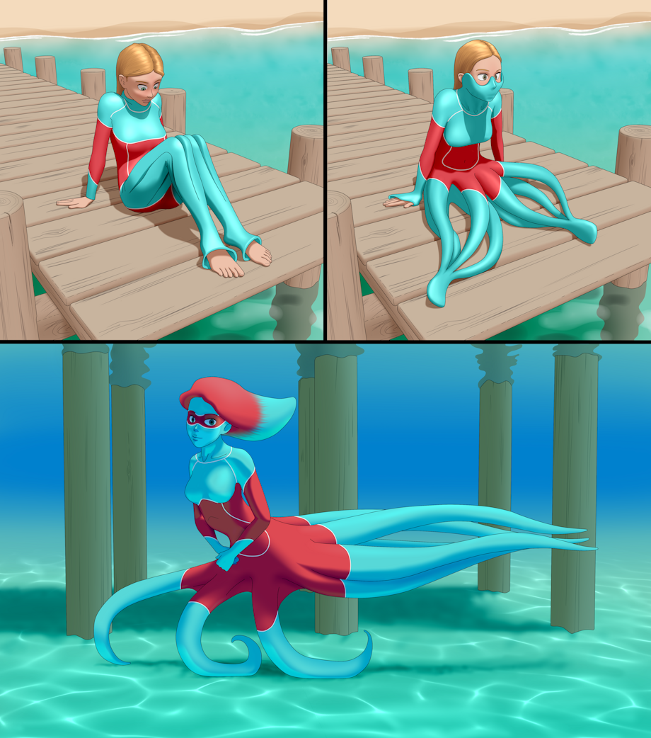 Commissioned yet another aquatification, one of maybe a dozen so far, but this time the suit makes the wearer an octopus aquatic. I imagine this one taking some time to get used to, but you can easily spend days at a time with one of these on, and what a lovely way to spend your vacation.