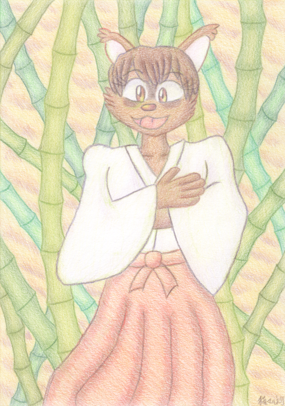 I draw my demon lady character Mara with green breeze effect. when I draw this outline I feel she is really energetic and powerful and I really enjoy coloring her. I like the color and her pose and expression and I want to draw her more.