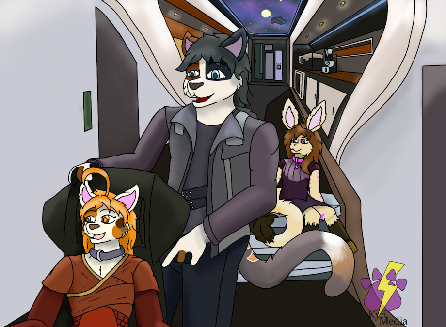 As they did, a larger ship would idly fly behind the some distance back. A large Carrack flew in silence, her crew busy handling the daily tasks while her captain was off training the young cub. Inside, two white female kitten twins named Jess and Jenn pilot the Carrack, keeping the larger ship on pace with the smaller spacecraft. They keep comms up with Carrie, Jess monitoring it and the wider space around them, while keeping Terry updated through their comms. Deeper inside, Ren, a racoon cub, goes around the ship's habitation quarters doing the cleaning. As the ship was still in top condition and the team as a whole have yet to enter any real dangerous situations, and because she already finished her main duty of checking the ship's maintenance, she had free time to go about and keep the place tidy. After all, it was her turn on cleaning duty, and hey, it was a great excuse as any to wear a French maid uniform that all the cubs had, just because it was fun. Finally, Jodi, the only other male on the ship and a beautiful, feminine skunk, was in another room on the habitation floor, this time taking care of a large, feral, yellow bird named Yuchi. Amber's pet and the zebra's main form of travel, the large bird was loyal to the Sweetsmirks and the crew, and while kind of useless in space, Yuchi would often act as a security force for the cubs, as well as helped Jodi and Amber about when transporting goods around the ship or cargo bay. It was Ren's job to check on the cargo, assist Amber in the medical bay, and now, babysit Yuchi, a job he loved the most, and that kept him on his toes at all times.