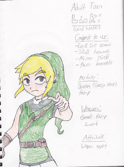 Bio: In her world, all genders are reversed. She joins the other Links after Fierce Deity Link put Prince Zel in a sleep state for which he will not wake. She hopes to awaken her beloved prince.