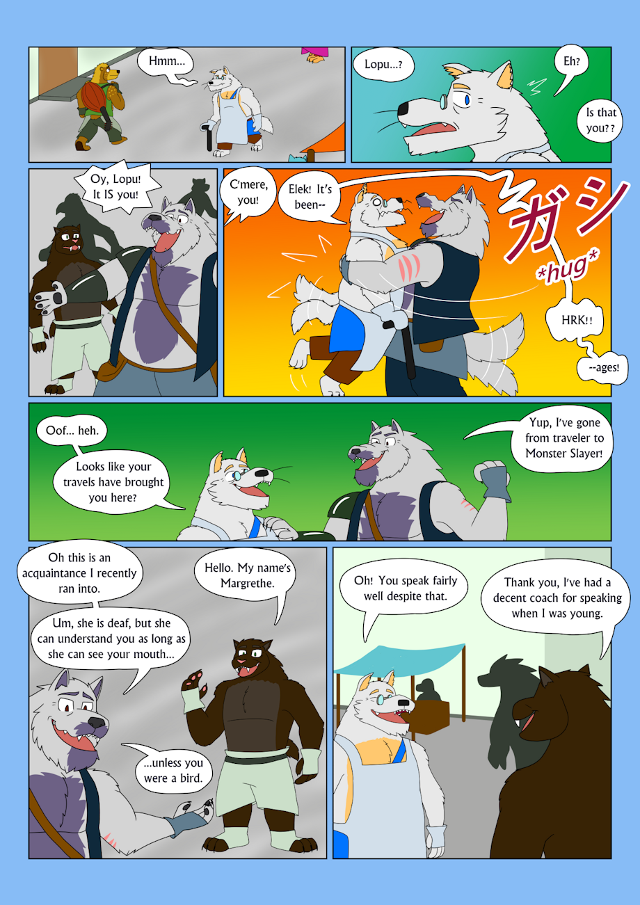 After their encounter in the forest, Tygo and Auda are given Moon Emblems to better defend themselves. While Otto makes efforts to insist on Auda being a baker, monster hunters arrive in town and bump into Lopu.