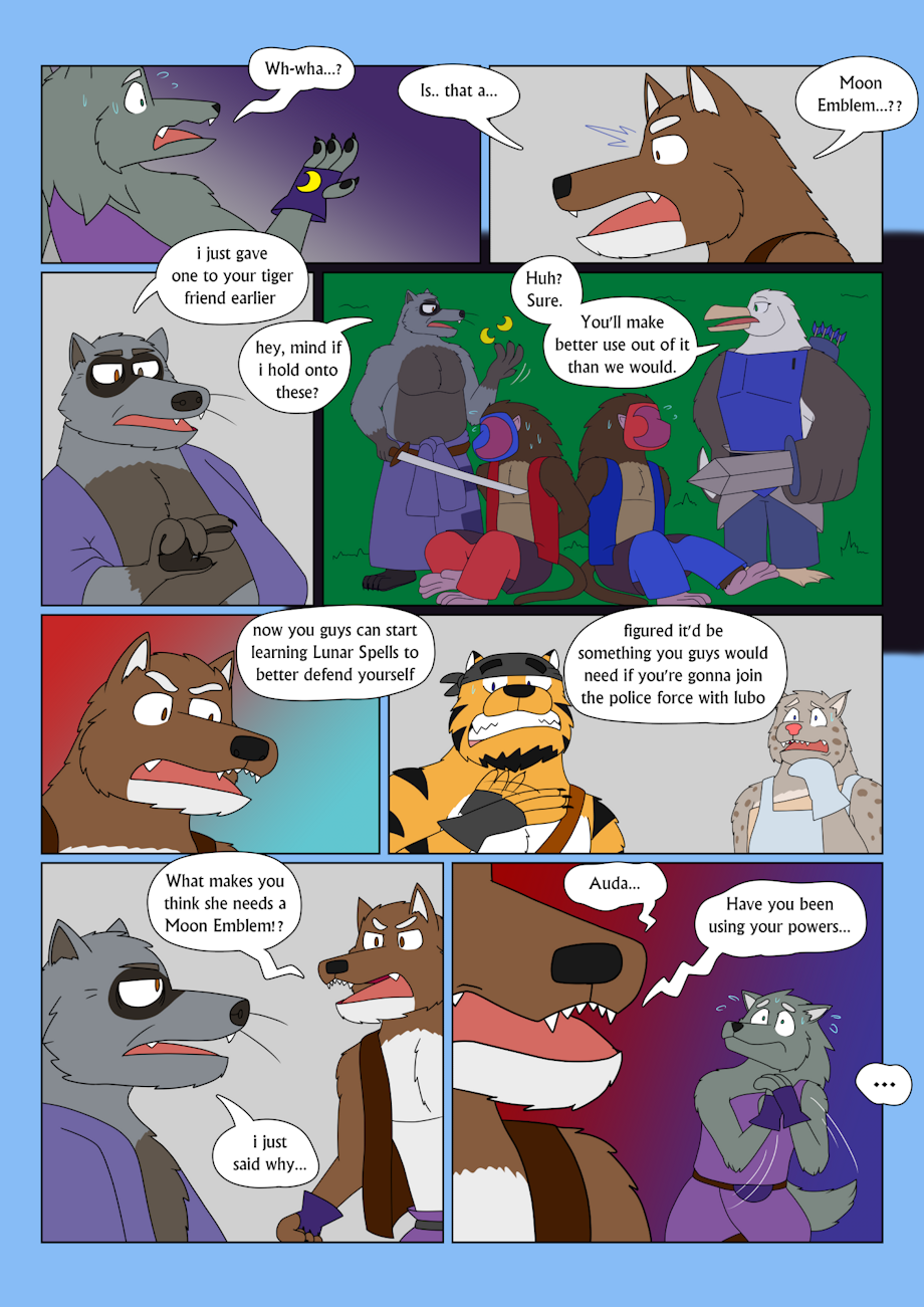 After their encounter in the forest, Tygo and Auda are given Moon Emblems to better defend themselves. While Otto makes efforts to insist on Auda being a baker, monster hunters arrive in town and bump into Lopu.