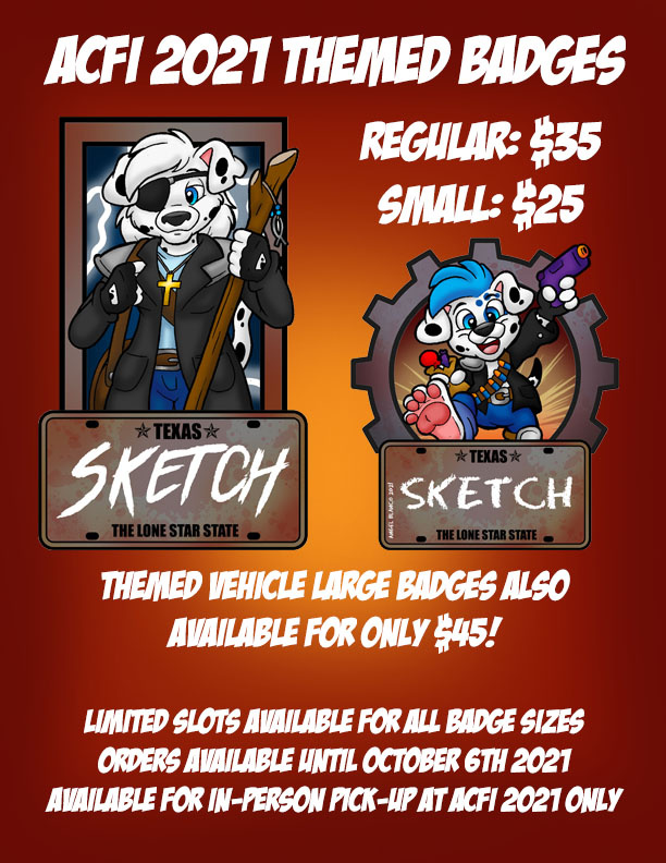 And finally, all badges ordered will be available for in person pick up at Alamo City Furry Invasion!