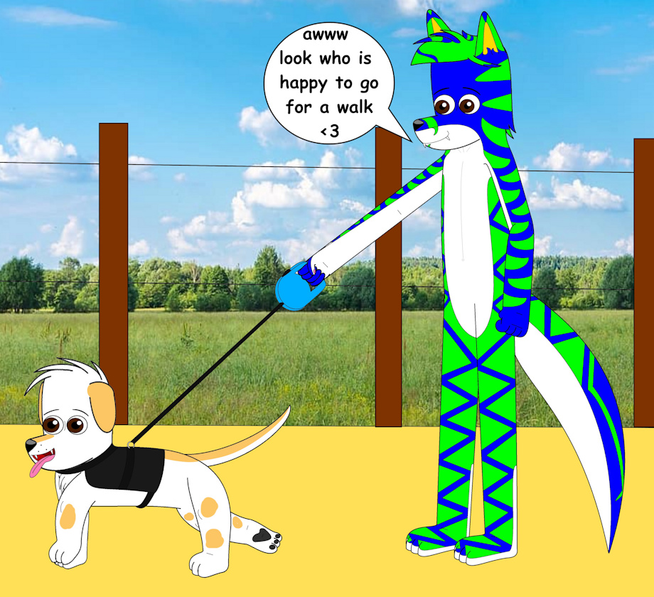 hey guys!!! so my growing pup loves to go for walks that way he can smell and see the world and also annoying random people XDX3 so any way nestor is growing so we need to teach him to go for walks :)