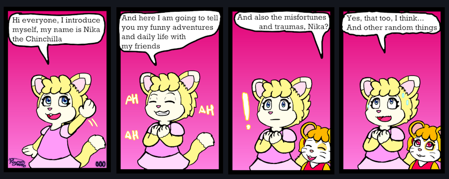 It begins the development of a project that I hope to do it very often, as our friend Nika says, this mini comic will tell things of the day to day of my characters, both joys and misfortunes, as well as with the interaction of special characters, which can occur very funny events, I hope you enjoy it.