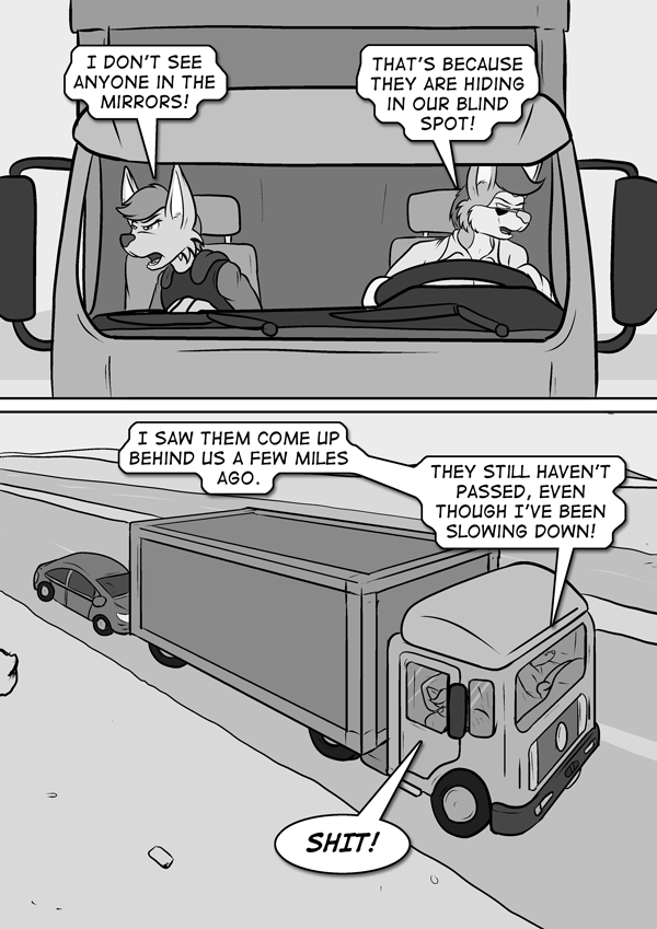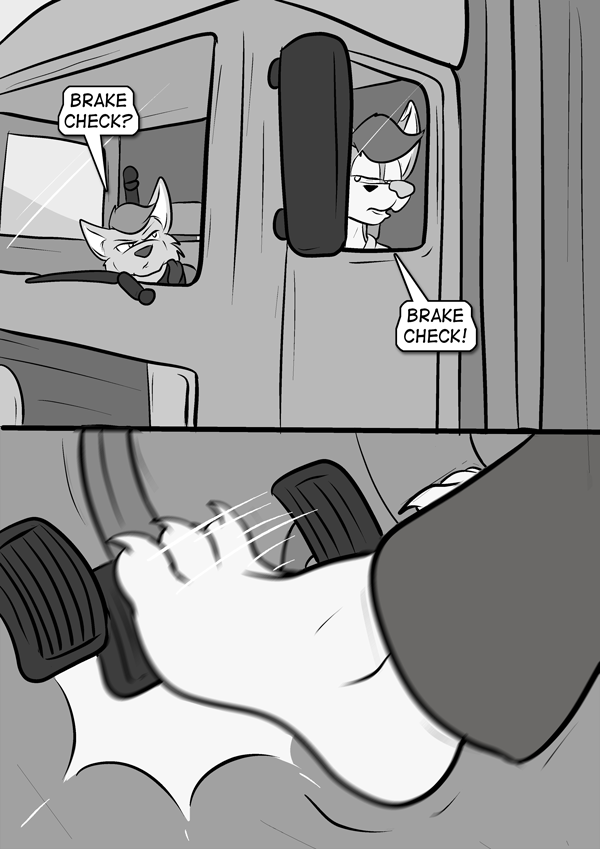 >SCREEEECH CRUNCH<..,"Hey, hotshot, your fault. You rear ended me. I didn't want to run over that raccoon that crossed in front of me. I hope you got good insurance. You scratched my trailer bumper. It's going to be costly to match up the paint".