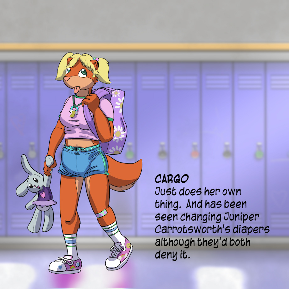 A sequel to the "Teen girl squad" pic. It seems Cargo is a trendsetter whether she realizes it or not. Now all the Cool Girls are unsnapping their onesies to show off their thick diapers. Of course Cargo gets no credit whatsoever