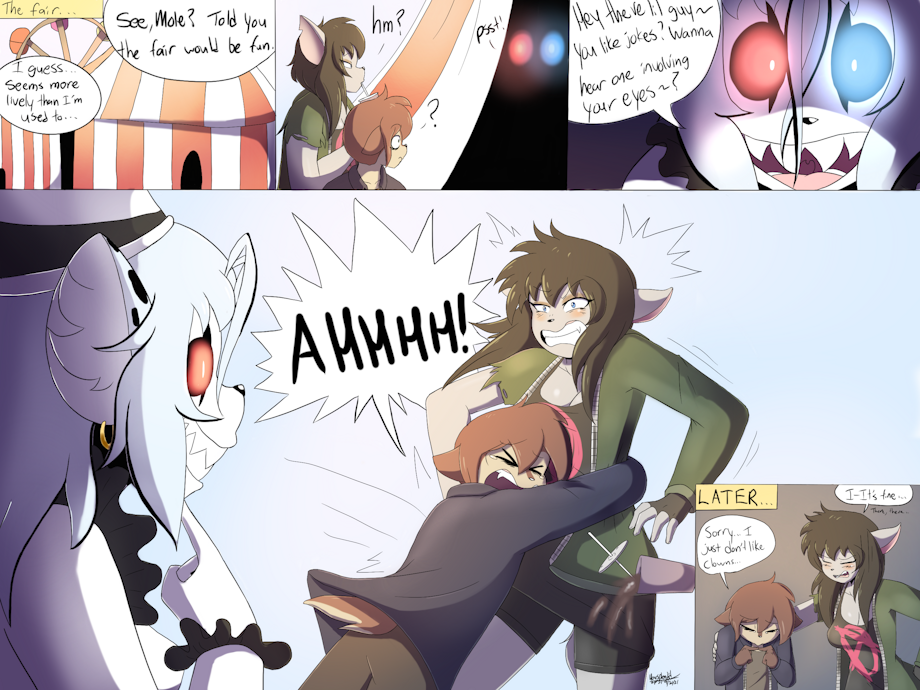 Zoe and Mole hanging out at the fair with Kim scaring Mole. Done for the sfw poll on twitter