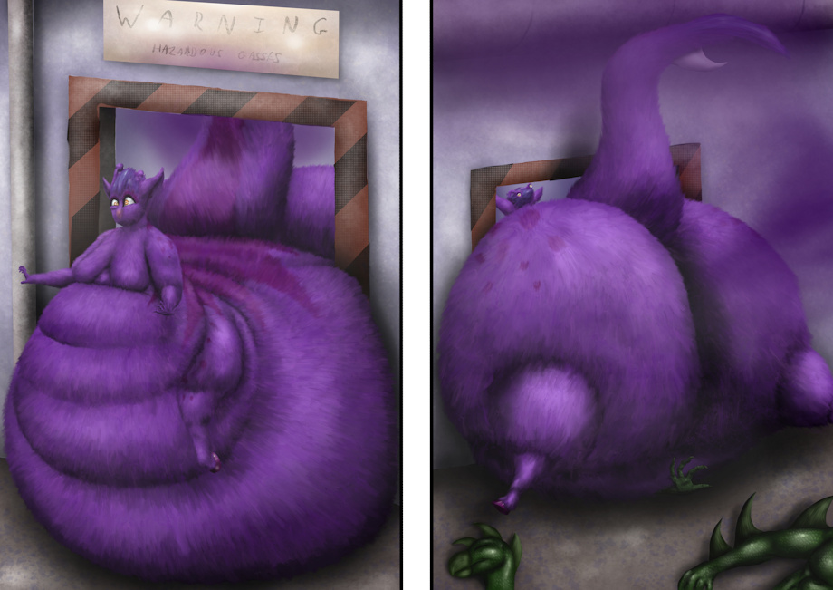 Commission for Gahtren of his Andalite character, Zarah, getting stuck in a doorway while demorphing in a factory full of Yeerks!