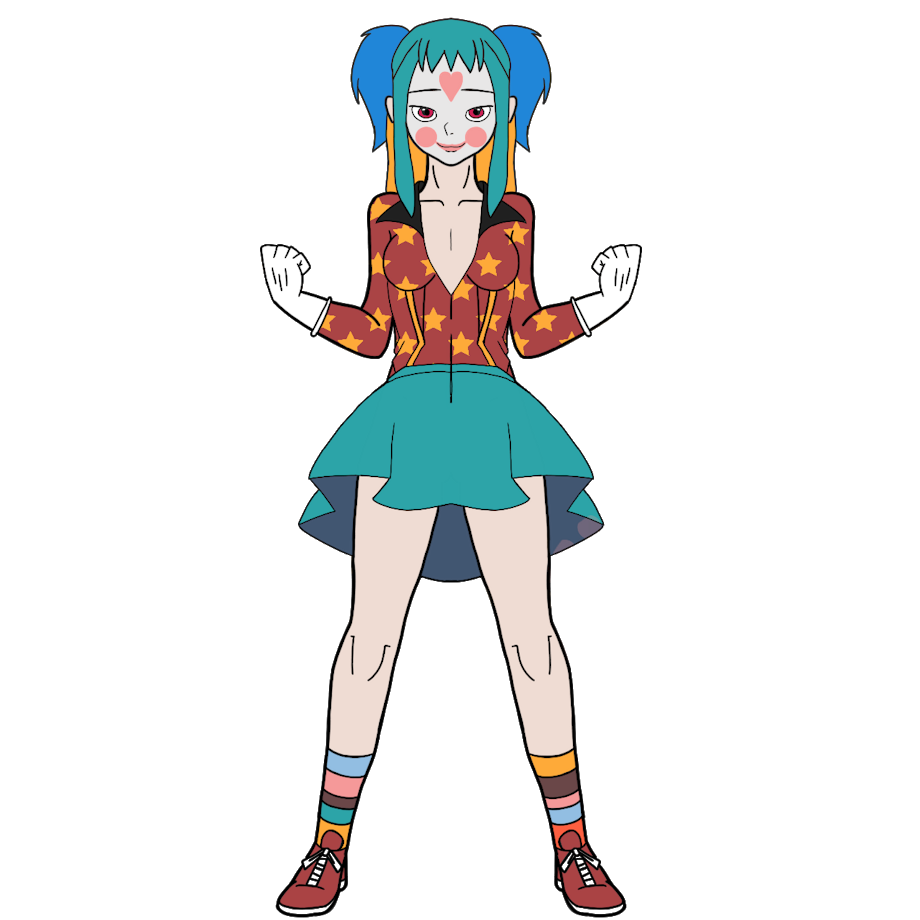 pants, skirts, and socks with shoes may vary, but always her ring master coat.