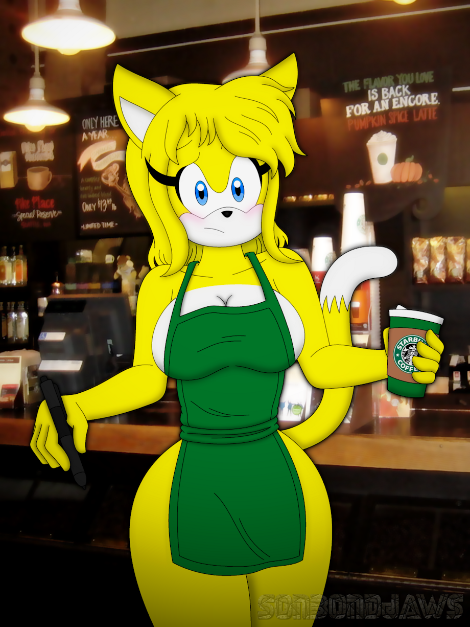 *Fun fact: I was gonna go and draw Beatrice again in this, but I already have her at Hooters, so that's proven to not happen. Plus, Carrie working at Starbucks sounds like a more fitting idea. X3*