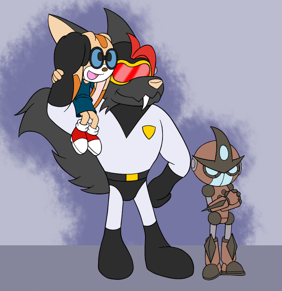 I was watching Time Squad the other day when I remembered a friend's OC being both a big wolf and a dad figure and I just had to draw him cosplaying the time squad with Cream and Gmerl! (part of a story we've been writing)