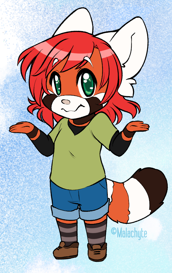 That is a cute outfit. I particularly like the little stripey socks, and that shade of green looks really pretty with her orange fur. The pose and that little shrug are just adorable, too! Seems like '20 was a pretty good year for art, at least!