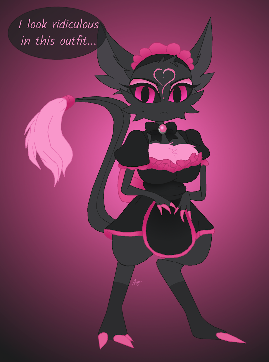 Cammie trying on a maid outfit. Not really her favorite thing to wear, but she sure looks cute!~