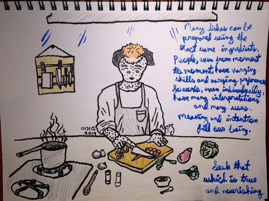I was tired today, so I drew this in a single sitting free-hand with a magenta sharpie. I coloured it to break it up visually and to make it look more complete. :)