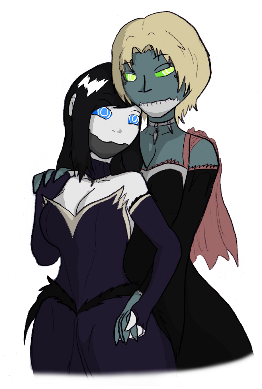 Forsaken couple; Alicia Ravenspear, my mage, and her beloved, Faith Darkword, in very lackluster-designed wedding dresses because I cannot design clothes at all.