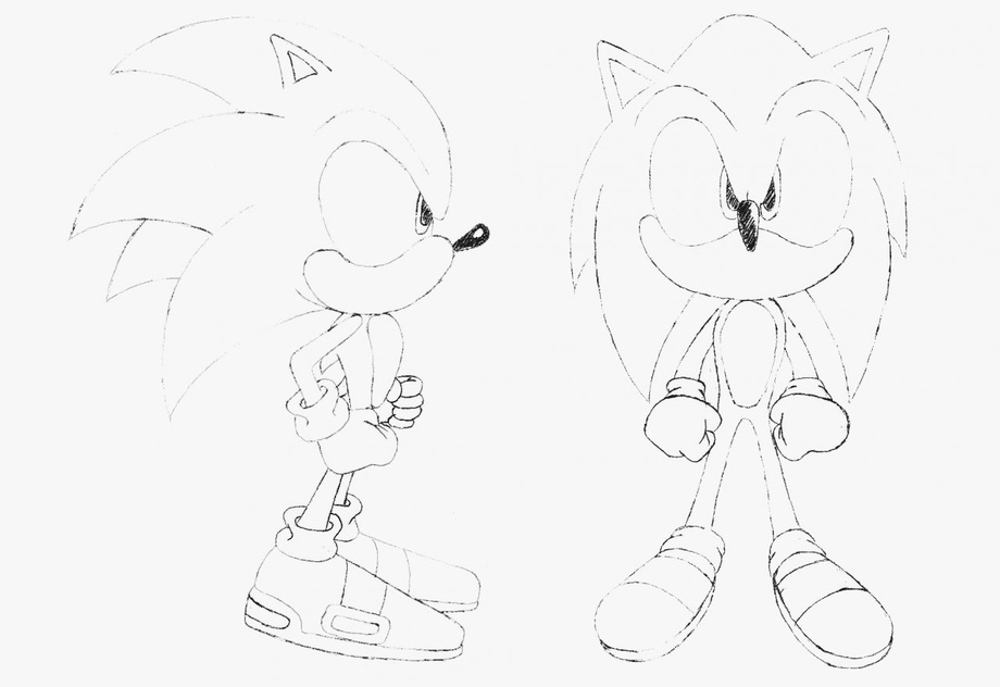 This is a very quick sketch i made for Sonic from front and the side while at work, sorry for the quality but the scanner was being gay