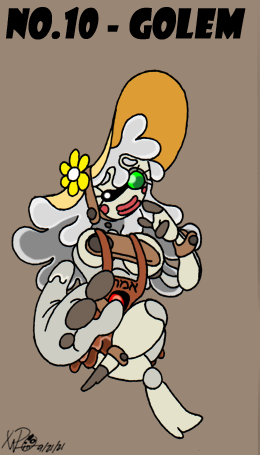 One thing I really wanted to do was to have a set of characters that created a striking dichotomy with the main one being small and cute, while the other is large and seemingly intimidating but isn't actually. Something about that just really fit glamim to me-(yes, that's actually the plural of golem)-and it further made them stand out among the rest. As for the golem girl herself, I wanted to go for that awkwardly adorable appeal. Something that's openly off putting but in an endearing way and with just a tiny Southern Belle flare to her. The larger one, I like to picture it as something she rides around in and uses to help her with gardening and landscaping. It's sentience is questionable, as is the case with most glamim!