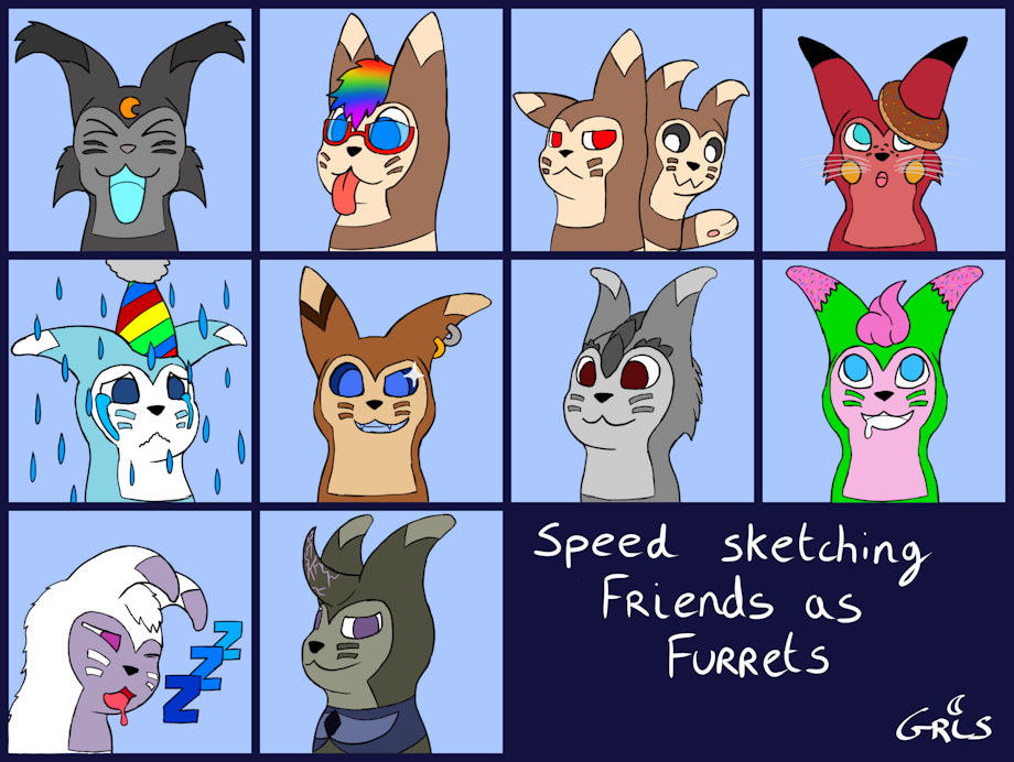 Some little speed sketches i made a while ago where i drew myself and a bunch of friends as furrets.