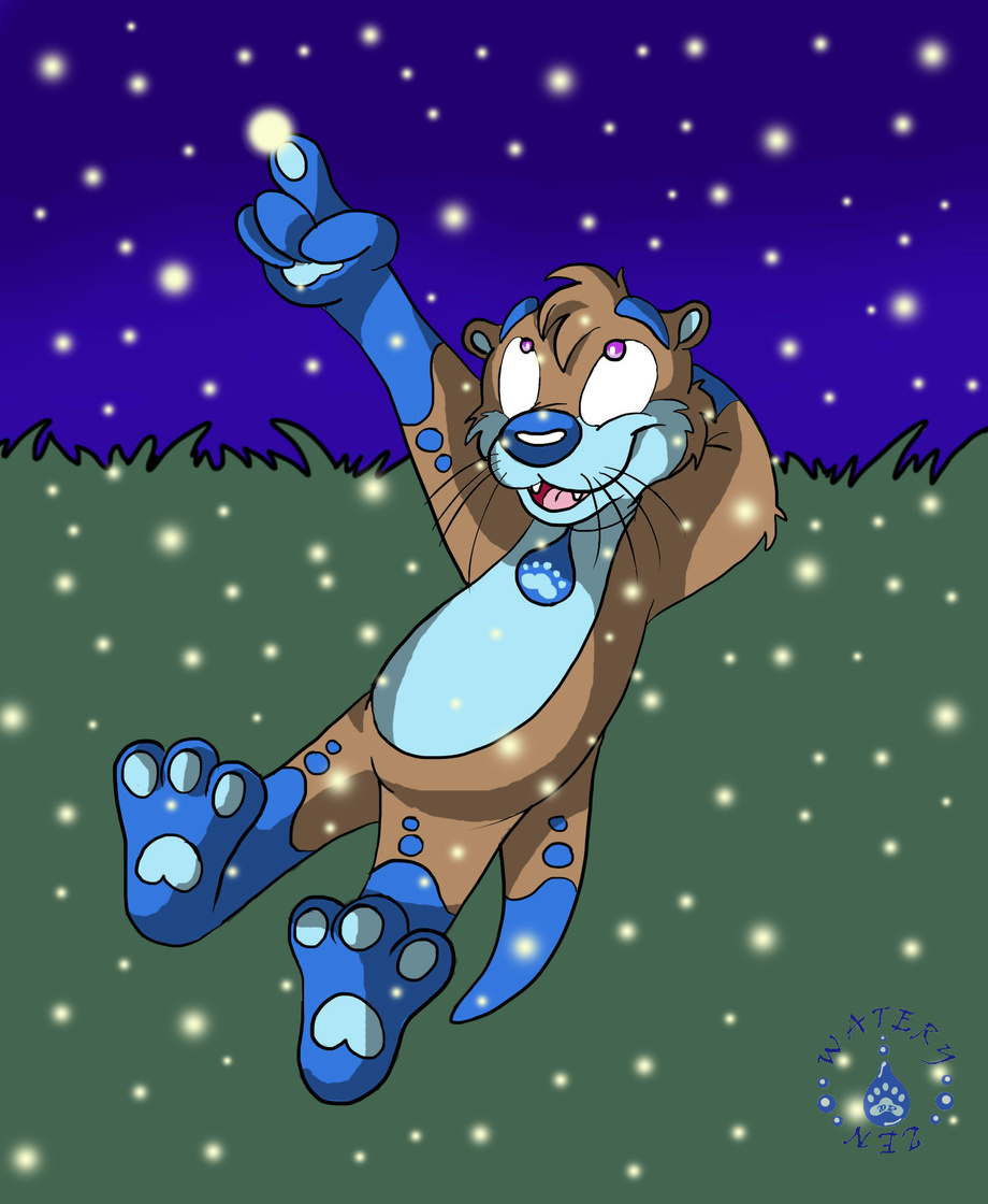 Its another pic made with digital tablet, SAI and photoshop, a second imiting thedoggygal's (furaffinity) style prove. Its (me) Watery relaxed in a lovely full of fireflies night.